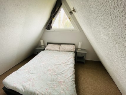 Master bedroom with double bed, side cabinets with lights. CHest of draws